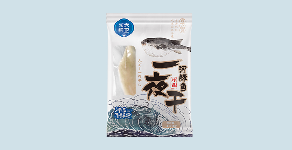 味醂魚干 天正味醂河豚魚干,用料嚴格、工序考究、傳承古法。我們取河豚魚精肉,去骨去膜、標準切割,經數天低溫風干,祛除魚肉內水分,再添加味醂調味料,浸入鮮甜美味。解凍后,烤箱烘烤便可食用。